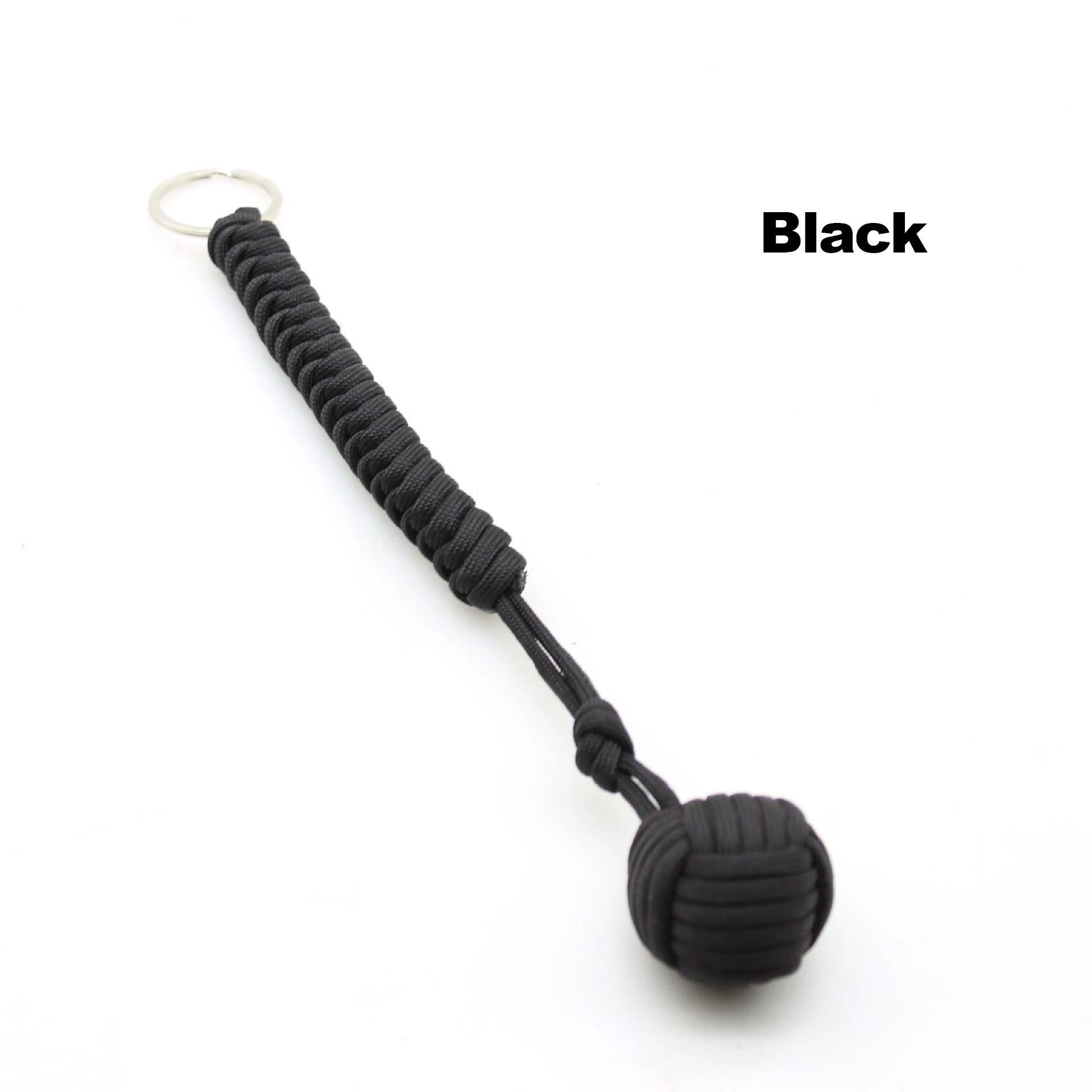 Maymun Yumruğu Çelik Top Kendi Kendine Savunma Anahtarlık Naylon Halat İpi Siyah