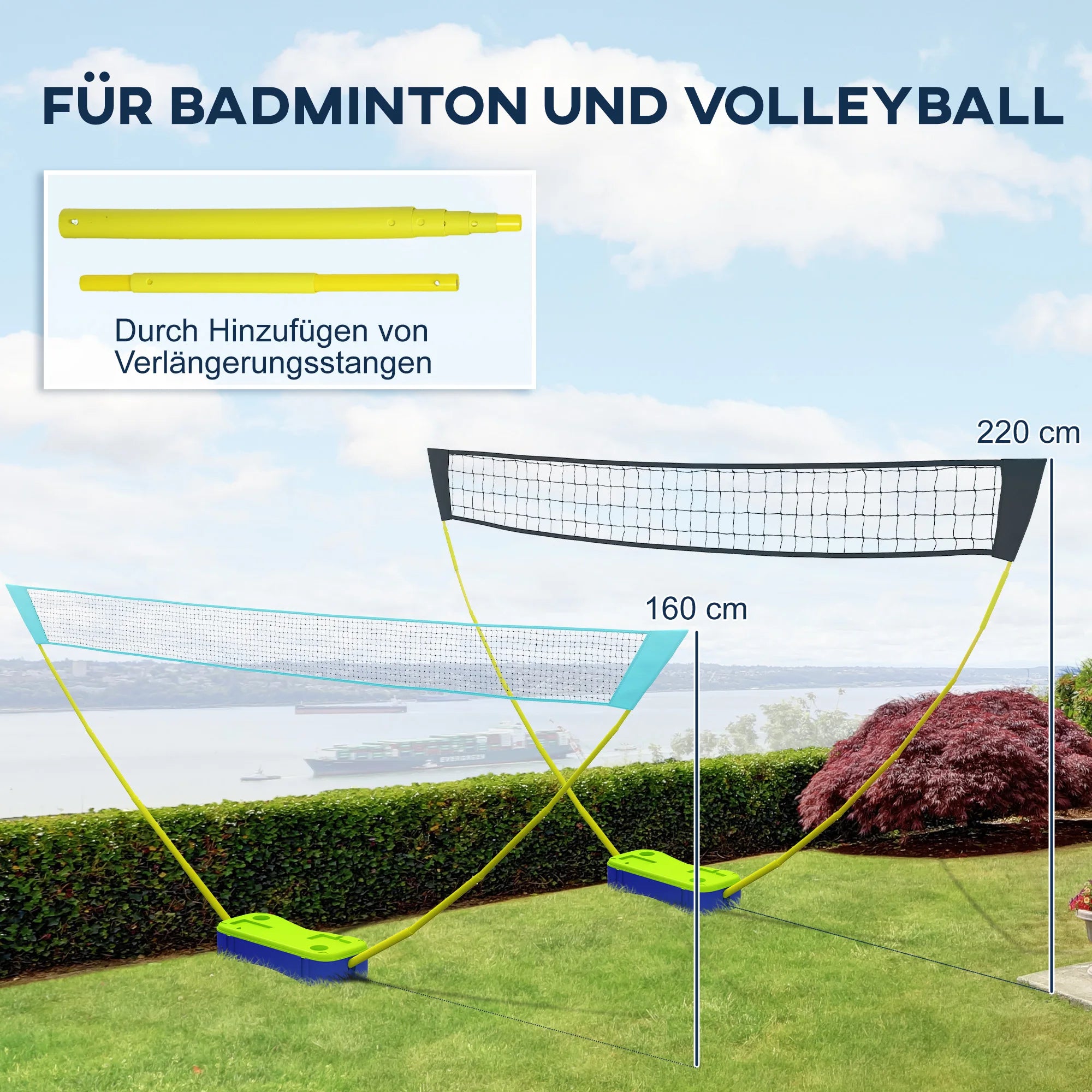 - Yükseklik ayarlanabilir: Farklı yaş ve beceri seviyelerindeki oyunculara uygun güvenli bir uzatma çubuğu ile badminton ve voleybol arasında kolayca geçiş yapın.