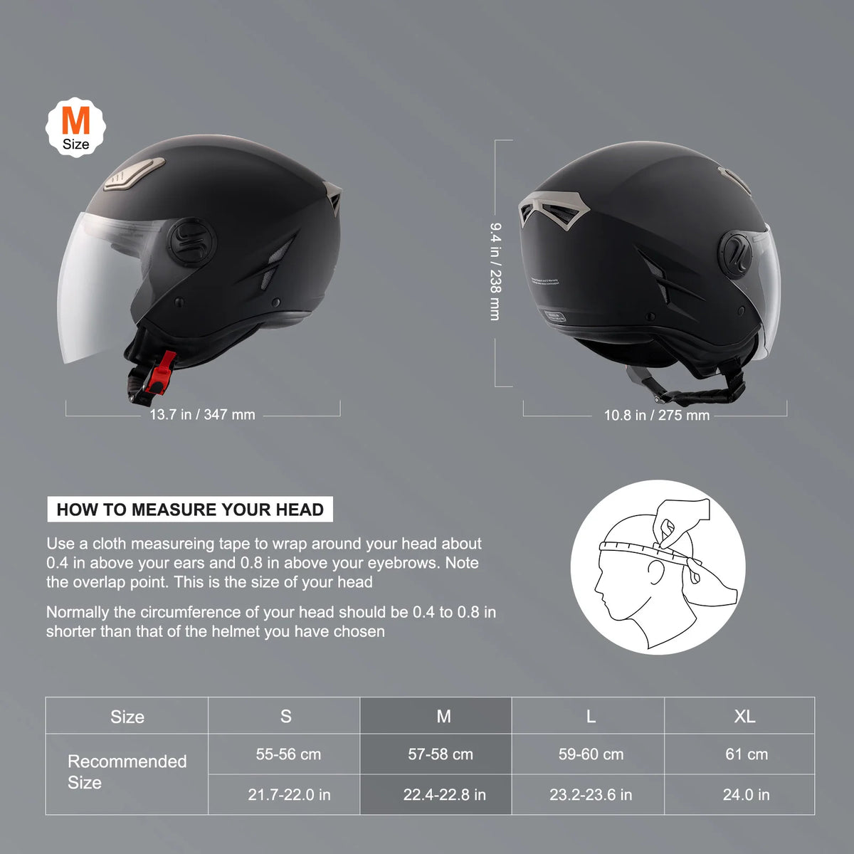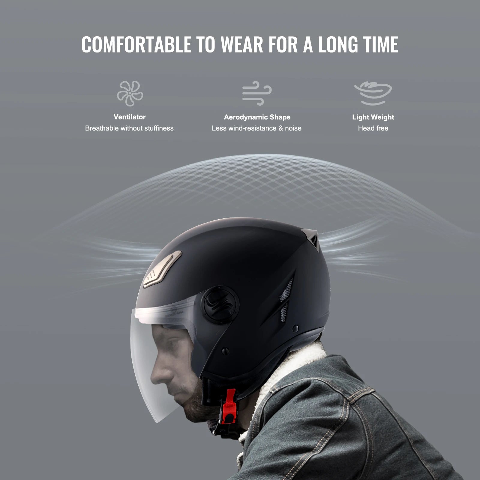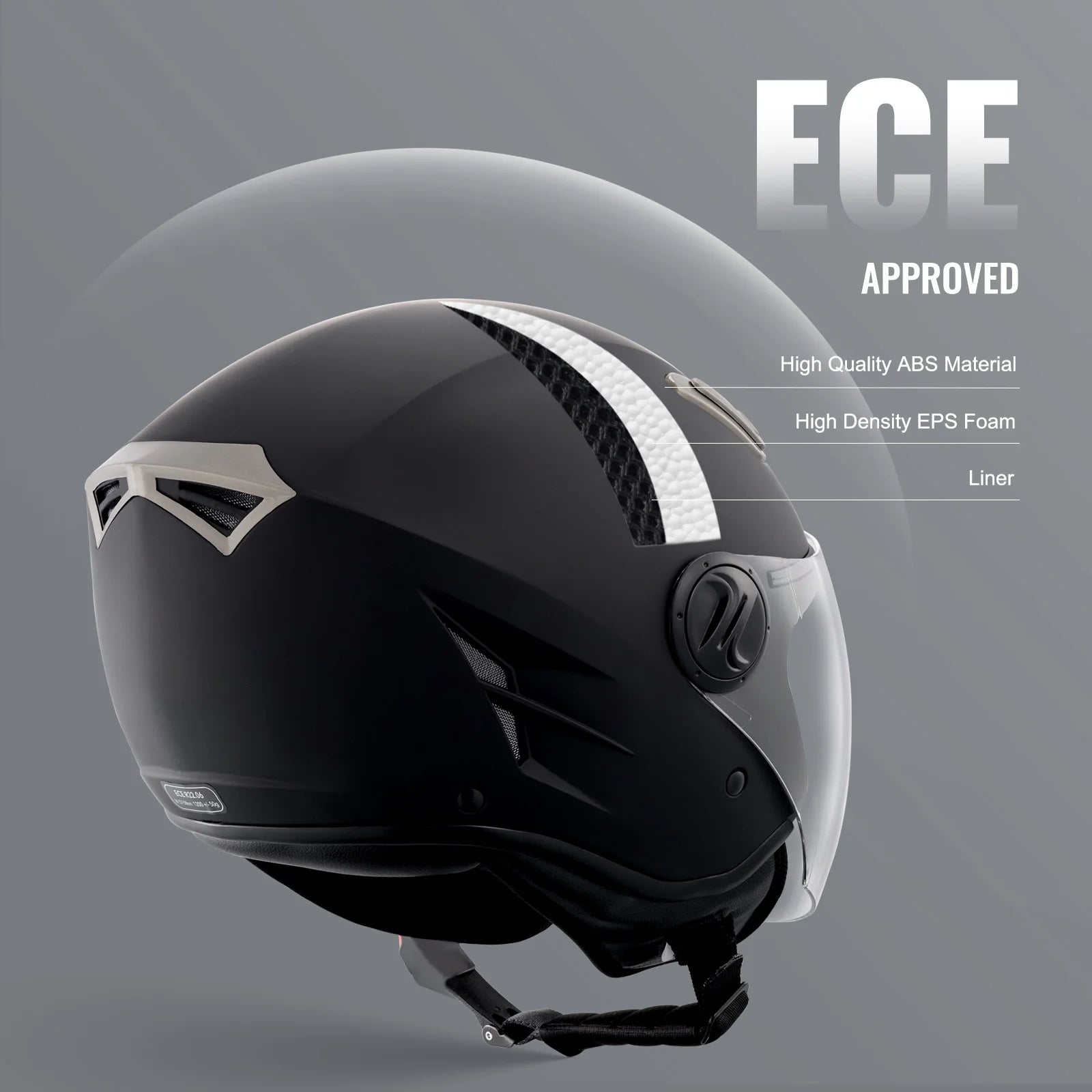 Günlük sürücüler ve hafta sonu maceracıları için tasarlanmış ECE sertifikalı ABS Üç Çeyrek Kask ile güvenle sürün. Dayanıklı ABS kabuk ve yumuşak EPS köpük ile koruma sağlamak üzere üretilen bu kask, darbe ve penetrasyon direnci sunarken uzun sürüşler için rahat ve dengeli bir uyum sağlar.