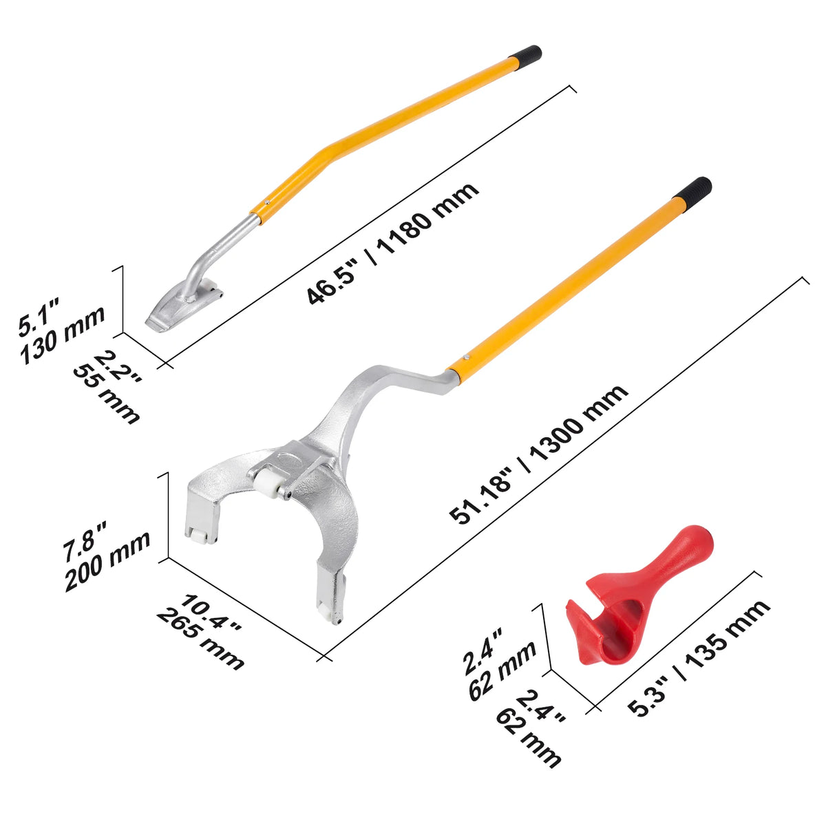 - Konforlu kauçuk kaplı kılıf ve kaldıraç esaslı çalışma ile ağır lastikleri daha az yorgunlukla kullanın; sürtünmeyi azaltmak için yağlama uygulayın.