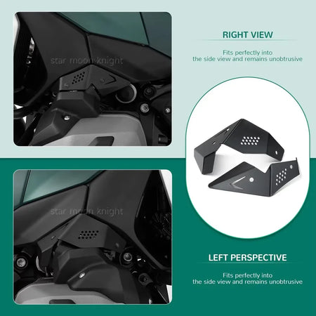 BMW R 1300GS'inizin gaz kelebeği alanını Star Moon Knight'ın bu koruyucu kapaklarıyla koruyun. Özellikle 2023- modeli için tasarlanmış olan bu kapaklar, sağ ve sol emme manifoltlarını, gaz kelebeği valflerini ve arkasındaki kontrol ünitelerini korur. Alüminyum kapaklar mekanik hasara, toz, kir ve hassas elektroniklerin potansiyel kirlenmesine karşı koruma sağlar ve önemli bileşenlere müdahaleyi engellemeye yardımcı olur. Zarif tasarım, motosikletin yan görünümüyle kusursuz uyum sağlayan stabilizasyon katları ve hassas açıklıklar içerir; dikkat çekmeden premium, zarif bir vurgu ekler. Teslimat kapsamı, her iki koruyucu kapağı ve kolay kurulum için gereken malzemeleri içerir, böylece sürüşünüzü hızlı ve güvenle yükseltebilirsiniz.
