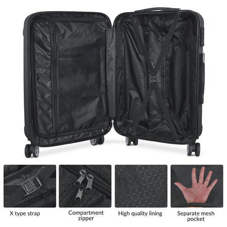 Sağlam ABS kabuğu, darbelere ve aşınmaya karşı sağlam koruma sağlarken zorlu ortamlarda korozyona karşı direnç gösterir. Dört pürüzsüz 360° döner tekerlek ve teleskopik çekme kolu, yoğun terminallerde, otel koridorlarında ve engebeli sokaklarda zahmetsiz gezinme sağlar. Yerleşik şifre kilidi, otelde kalırken veya uçağa binerken eşyalarınız için gizlilik ve güvenlik ekler. Bu genişletilebilir, döner tekerlekli bagaj seti seyahat endişelerinizi azaltır ve paketleme verimliliğinizi artırır.
