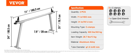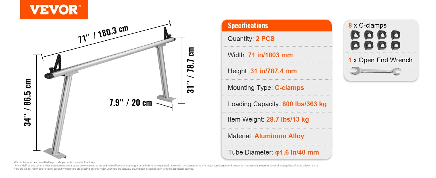 Vevor Alüminyum Kamyon Merdiven Rafı 800 Lb C Kelepçeleri 71x31