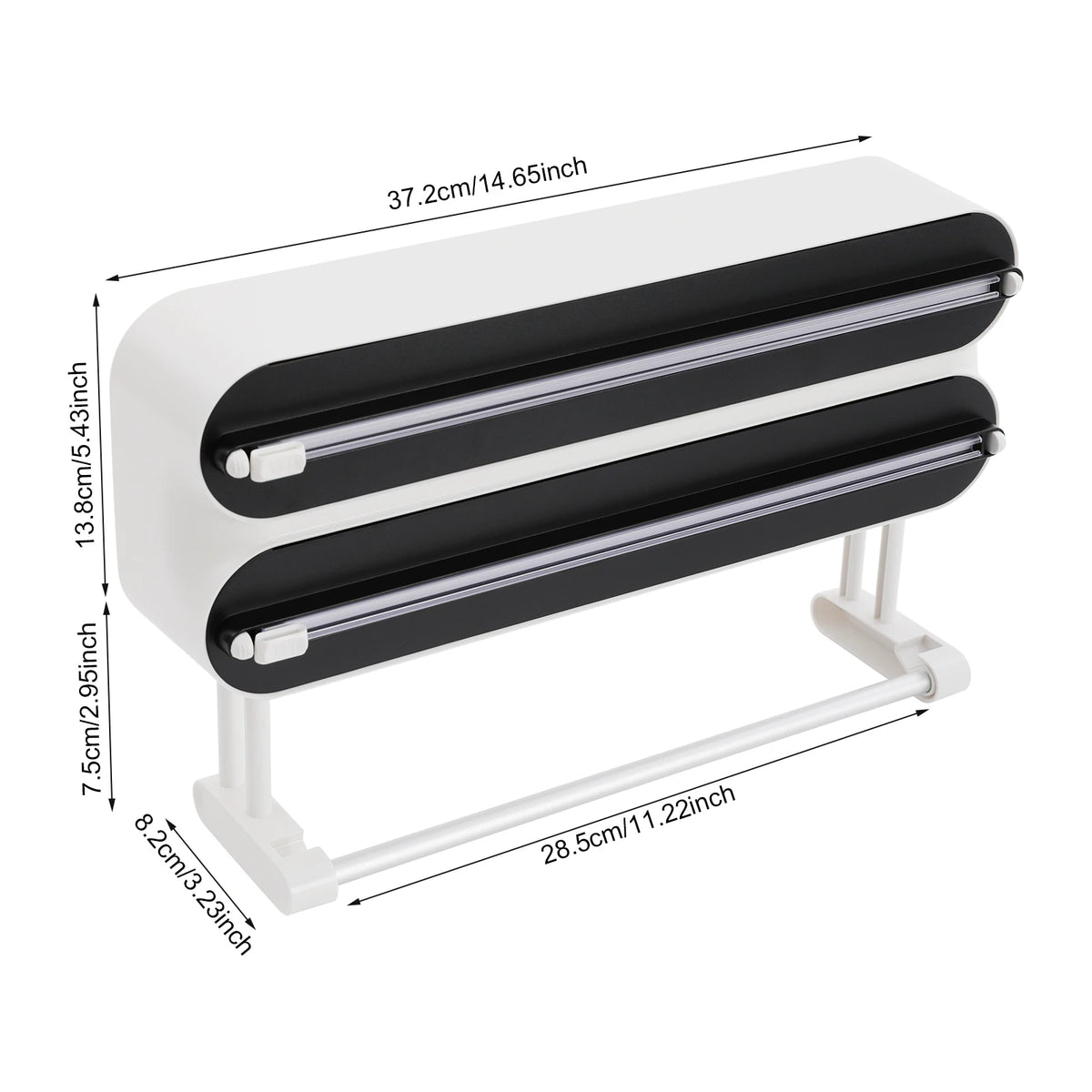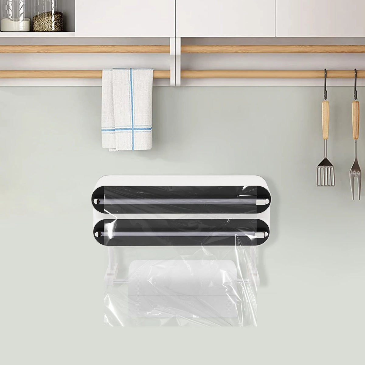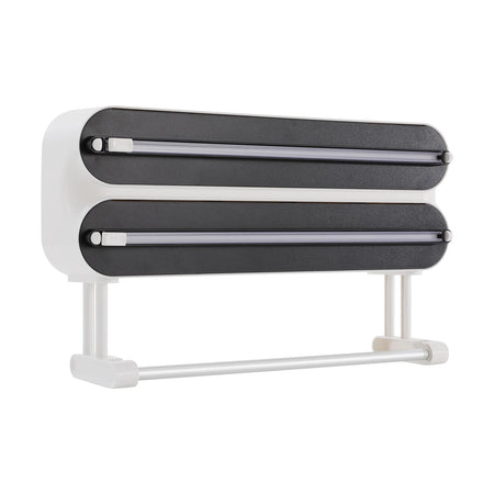 Mutfak organizasyonunuzu 2 Kancalı Duvara Monte Streç Film Dispenseri 3'ü 1 Arada Rulo Tutucu ile yükseltin. Bu modern, yer tasarruflu ünite, streç film, alüminyum folyo ve kağıt havluları tek bir kullanışlı duvara monte çözümde düzenli tutar, değerli tezgah alanını boşaltır ve günlük yemek hazırlama işlerini daha hızlı ve kolay hale getirir.