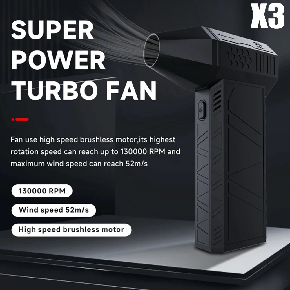 X3 130000RPM Turbofan Jet Hava Üfleme Aleti ile tanışın - klavyelerden, arabalardan ve dar alanlardan tozu uzaklaştırmak için tasarlanmış kablosuz, yüksek performanslı bir temizlik aracı. Fırçasız DC motor ile güçlendirilmiş, 130,000 RPM'ye kadar ve saniyede 52 metreye kadar rüzgar hızı sunarak hızlı ve güvenilir temizlik sağlar. Üç ayarlanabilir hız ile, hassas elektronik aletler veya inatçı kalıntılar için hava akışını özelleştirebilir, aşırı basınçlı üflemenin neden olduğu hasarı önleyebilirsiniz.